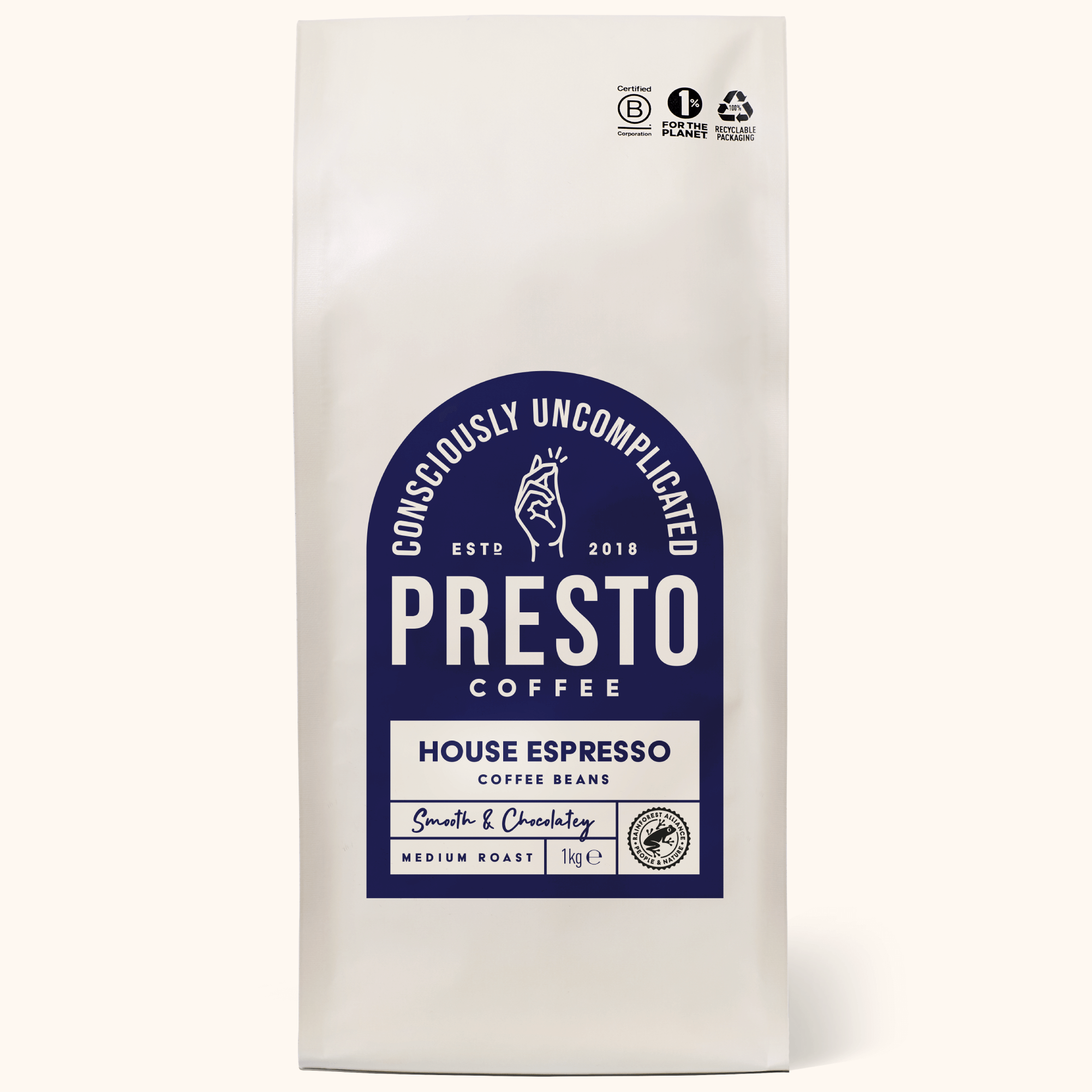 All Presto Coffee is B Corp certified, 100% recyclable and we only source our beans from Rainforest Alliance certified farms.